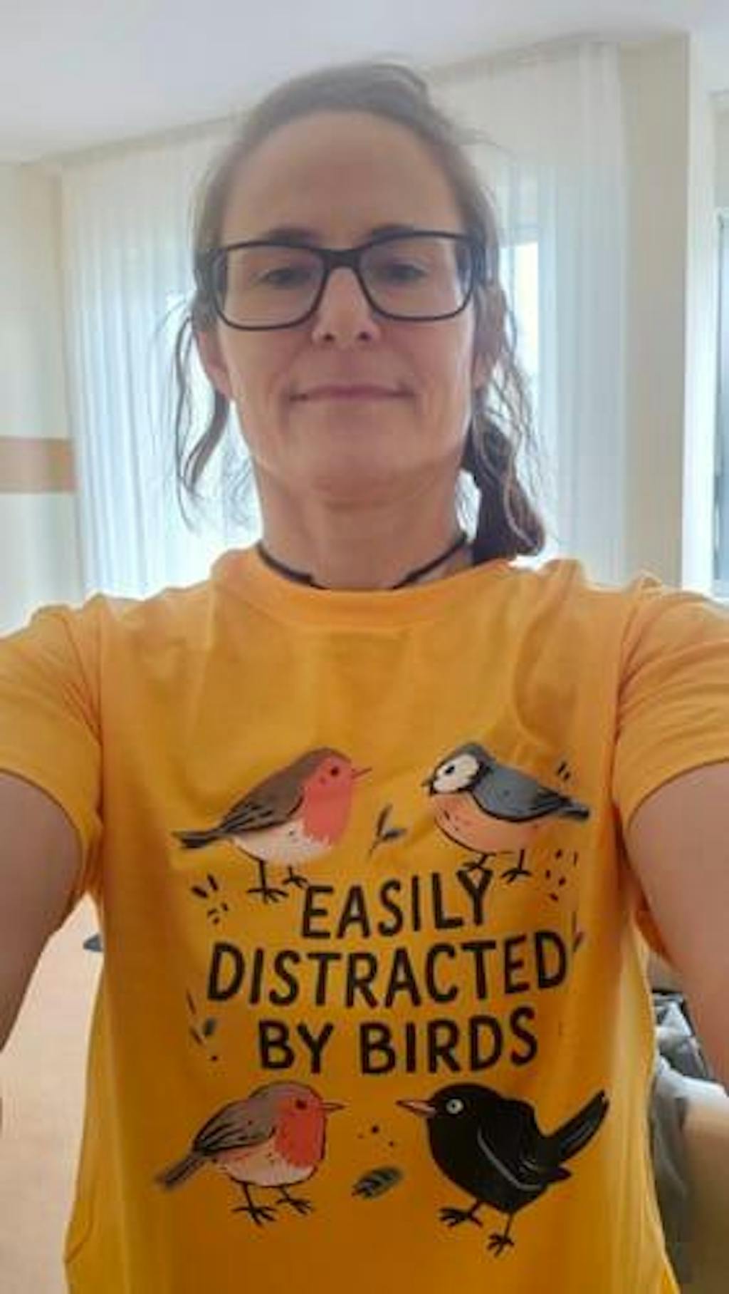 Das T Shirt ist der Hit, ich werde ständig drauf angesprochen, wie süß das sei. Und das Gelb fällt total ins Auge!! Ein Muss für jede*n Vogelliebhaber*in!!!